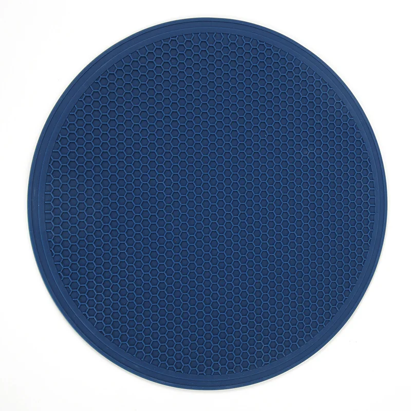 Introducing our 30Cm Large Silicone Mat Coaster, a versatile kitchen accessory designed to enhance your culinary experience. Crafted from high-quality silicone, this round placemat is not only visually appealing but also functional. Available in three elegant colors—Blue, Gray, and Black—this mat serves as an ideal surface for hot dishes, pots, or beverages, ensuring that your table remains protected from heat and moisture. Its stylish honeycomb design adds a touch of sophistication to any dining setting, making it a perfect addition to your kitchen decor.